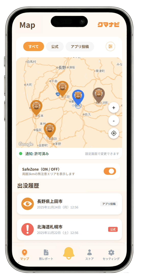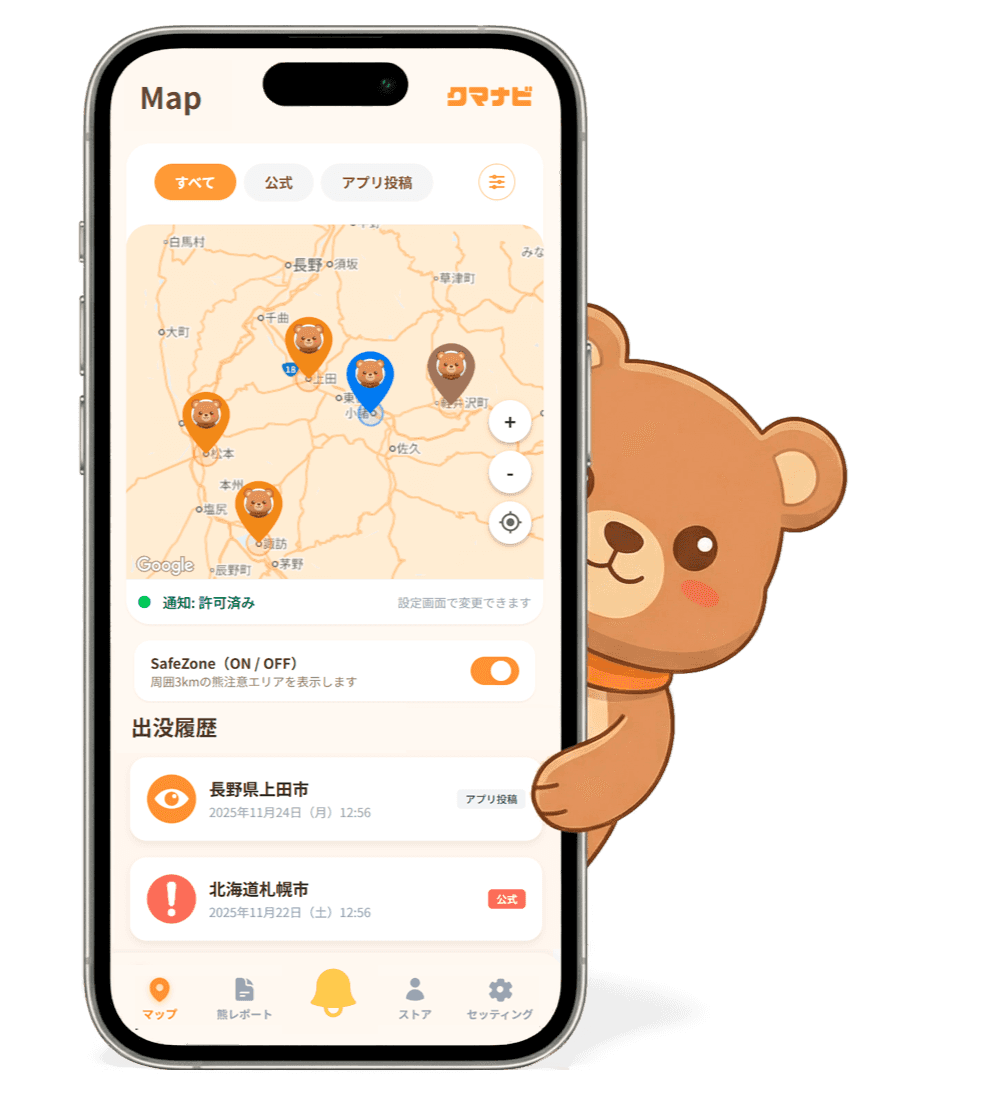 周辺のクマ出没リスクを把握し、 日々の外出をより安全にサポートします。